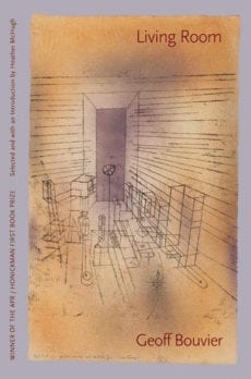 Geoff Bouvier’s first book, Living Room, was selected by Heather McHugh as the 2005 APR/Honickman Prize winner and was published by Copper Canyon Press. His second book, Glass Harmonica, appeared in 2011 from Quale Press. In 2009, he was poet-in-residence at the University of California, Berkeley. For five years, he wrote long-form magazine journalism for San Diego Reader, publishing over fifty cover stories. His poems have appeared in numerous journals, including The American Poetry Review, Boston Review, The Denver Quarterly, jubilat, New American Writing, and VOLT. He holds an MFA from Bard College, a PhD from Florida State University, and is currently an assistant professor of creative writing at the University of Toronto.